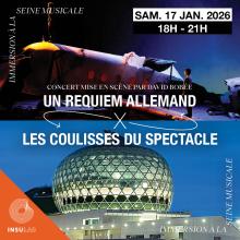 Résumé de votre sélection Résumé Afficher les détails Sélectionnez votre produit 1 Sélectionnez votre produit 2 Sélection des produits Choix des places Résumé Your products of INSULAB - VISITE DES COULISSES - 17.01.2026 - 19h30 Votre sélection est valide Disponibilités limitées, cliquez ici pour voir les détails UN REQUIEM ALLEMAND, BRAHMS UN REQUIEM ALLEMAND, BRAHMS Samedi 17 janvier 2026 - 18:00 17.01.2026 - 18:00 Auditorium Patrick Devedjian Produit ajouté à votre package Retirer ce produit de votre package Produit retiré de votre package 20 € EXPERIENCES INSULAB - VISITE DES COULISSES EXPERIENCES INSULAB - VISITE DES COULISSES Samedi 17 janvier 2026 - 19:30 17.01.2026 - 19:30 LA SEINE MUSICALE Produit ajouté à votre package Retirer ce produit de votre package Produit retiré de votre package 5 €